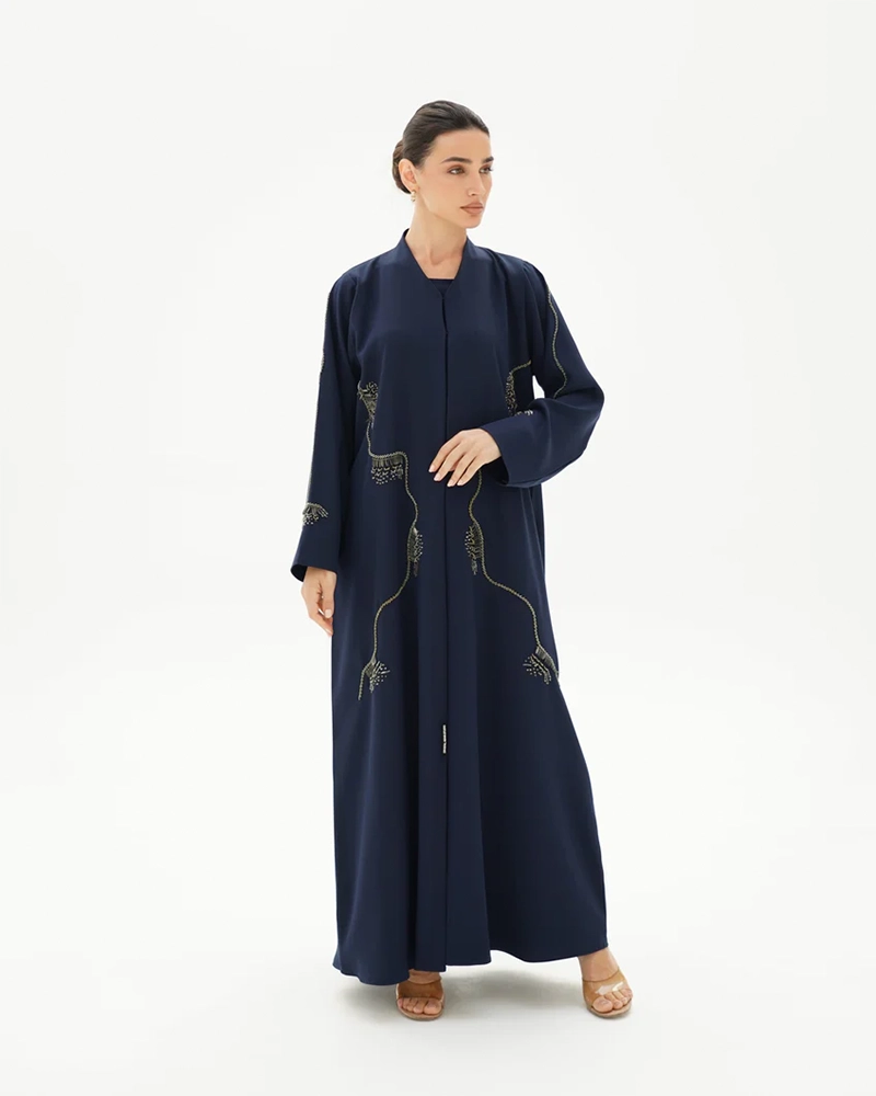 The Midnight Blue Elegance Abaya is a graceful modestwear piece with a flowing fit, rich blue tone, and delicate embroidered accents. It combines comfort, modesty, and timeless sophistication, making it perfect for both everyday elegance and special occasions.