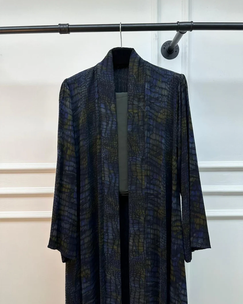 The Premium Navy Blue Abaya is a graceful open-style piece with a flowing fit, rich textured fabric, and refined front detailing. It offers the perfect blend of comfort, elegance, and timeless sophistication for both everyday wear and special occasions.